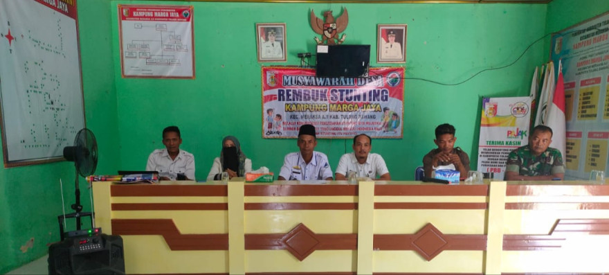 MargaJayaNews, www.margajaya.smart-tuba.id, (03/12/2022) - Pada 01 Desember 2022 Kampung Marga Jaya menggelar rembuk stunting. Rembuk stunting merupakan salah satu rangkaian pramusyawarah desa untuk penyusunan Rencana Kerja Pemerintah (RKP) Desa tahun 2023, juga menjadi amanat Pemerintah Kabupaten Tulang Bawang terhadap pemerintah desa agar memprioritaskan penggunaan dana desa tahun 2023 untuk pencegahan dan penanganan stunting.