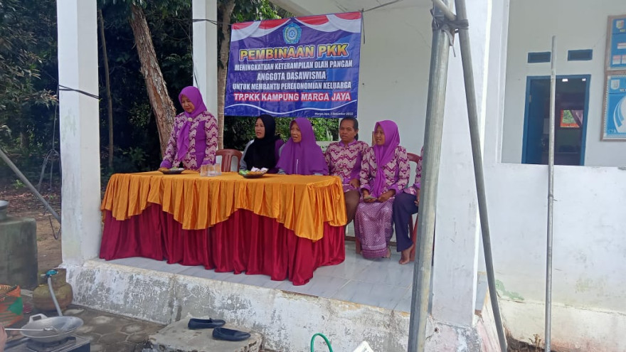MargaJayaNews, www.margajaya.smart-tuba.id (04/12/2022) - Pada Minggu, 04 Desember 2022 Tim Penggerak Pemberdayaan dan Kesejahteraan Keluarga (TP-PKK) Kampung Marga Jaya mengadakan kegiatan pembinaan PKK melalui keterampilan olah pangan. Kegiatan ini bertujuan untuk Meningkatkan Keterampilan Olah Pangan Anggota Dasawisma Untuk Membantu Perekonomian Keluarga. Selain itu, kegiatan ini bertujuan untuk meningkatkan persaudaraan antar Kader PKK Kampung Marga Jaya. Kegiatan ini bertempat di Halaman Gedung Posyandu Kampung Marga Jaya.