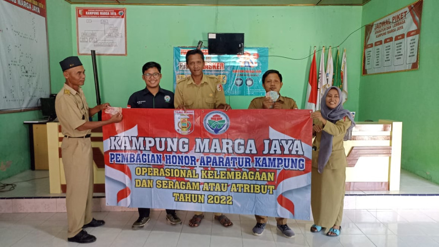 Pada tanggal 27 Maret 2023, Pemerintah Kampung Marga Jaya telah membagikan Honor Perangkat Kampung, BPK, Kader Posyandu, Kader Pemberdayaan Masyarakat, Linmas, Supir Ambulan, dan Staf bagian Bulan Januari-April yang bersumber dari Dana Desa Tahun Anggaran 2023.