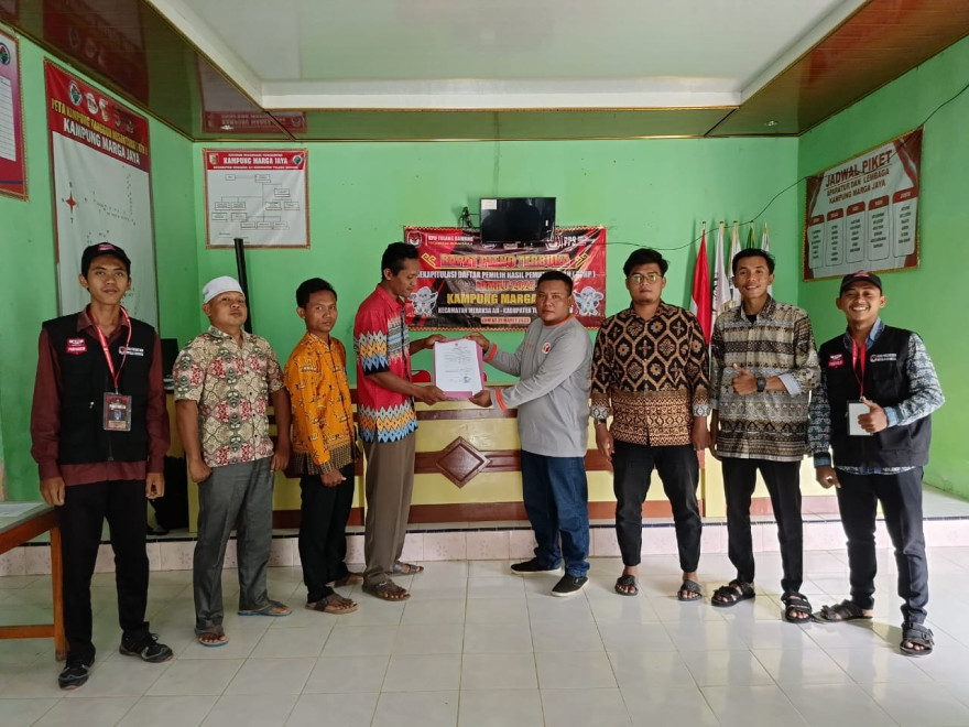 Panitia Pemilihan Suara Kampung Marga Jaya menggelar Rapat Pleno Terbuka Rekapitulasi Daftar Pemilih Hasil Pemutakhiran (DPHP) untuk Pemilihan Umum (Pemilu) Tahun 2024 pada Jumat Siang, tanggal 31 Maret 2023 di Balai Kampung Marga Jaya.