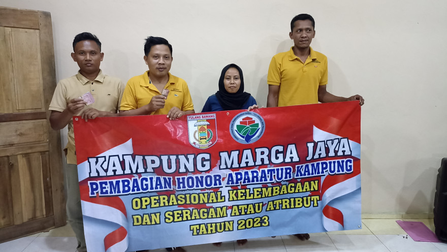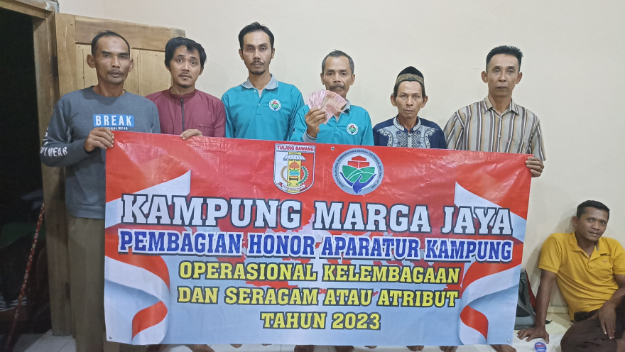 Pada tanggal 08 November 2023, bertempat di Balai Kampung Marga Jaya Pemerintah Kampung Marga Jaya telah membagikan Honor Perangkat Kampung, BPK, Kader Posyandu, Kader Pemberdayaan Masyarakat, Linmas, Supir Ambulan, dan Staf bagian Bulan September-Desember yang bersumber dari Dana Desa Tahun Anggaran 2023.
